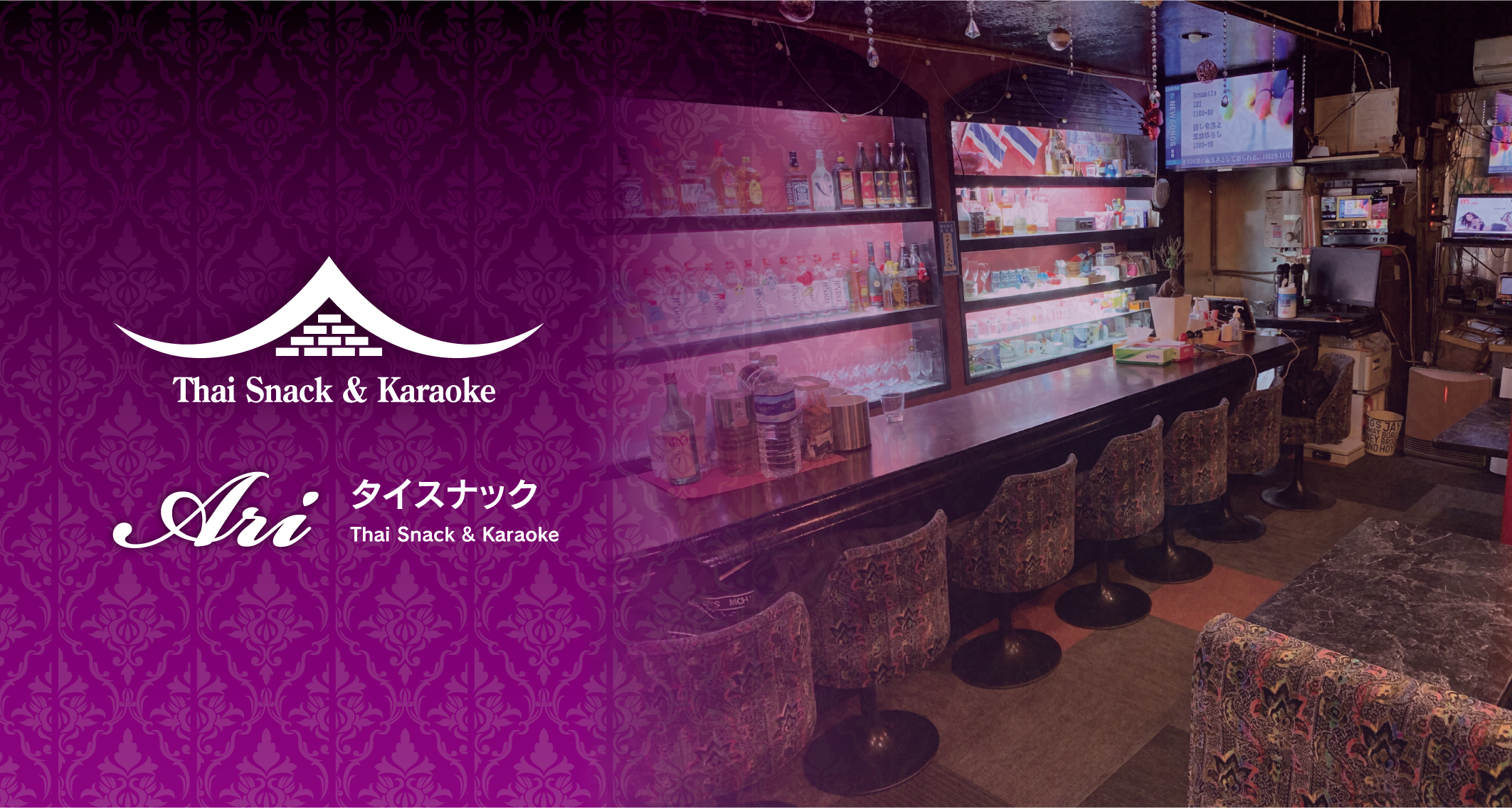 1階ではタイスナックを、2階ではタイ古式マッサージを運営しております。